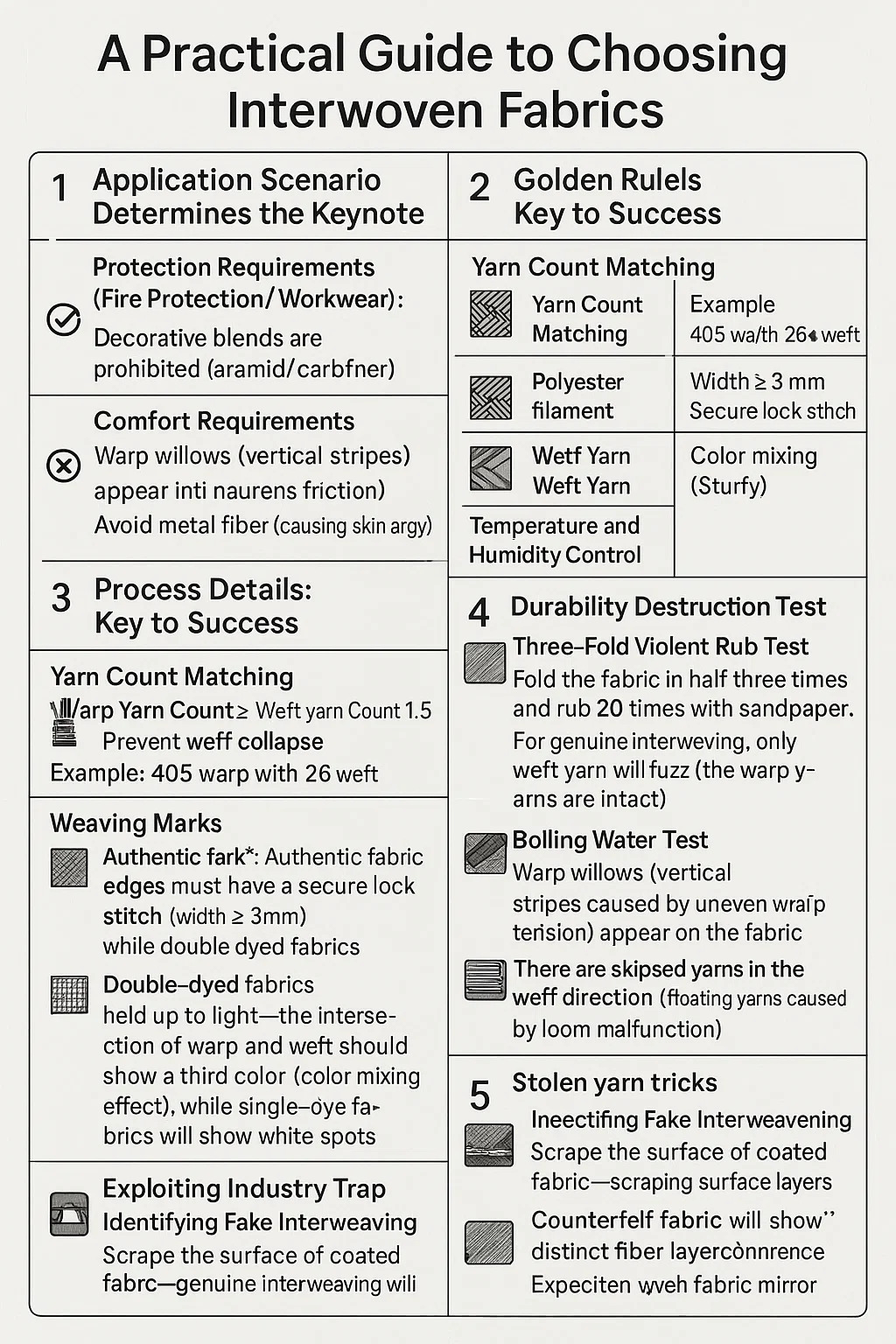 Zahtjevi zaštite (zaštita od požara/radna odjeća): Pređa osnove mora biti od vlakana visoke čvrstoće (aramidna/ugljična vlakna). Zabranjene su dekorativne mješavine (smanjena razina zaštite).