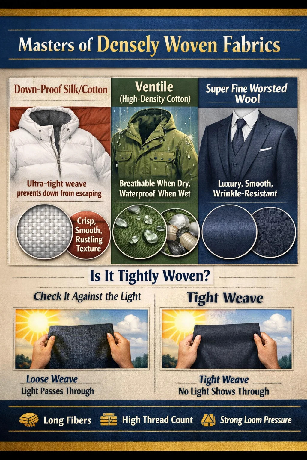 Kad je u pitanju svijet gusto tkana tkanina , ne postoji niti jedan apsolutni šampion, budući da definicija "gustog" ovisi o tome radi li se o vodonepropusnosti, otpornosti na vjetar ili krajnjoj glatkoći.